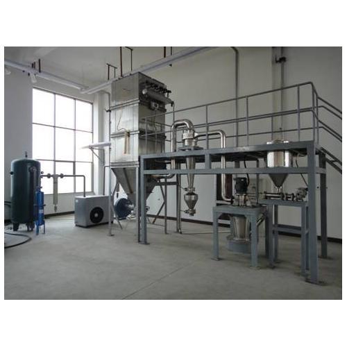 气流粉碎材料通过破碎设备,平均粒径、粒度分布窄、颗粒形状、表面光滑、纯度高、活性高、分散性好,能粉碎低熔点和热敏性材料及生物产品,因为射流机由压缩空气驱动,绝缘膨胀喷嘴系统温度降低。冲击粉碎机、振动磨机、搅拌磨机等磨矿设备,生产周期往往较长,生产效率低;粉碎材料会产生大量的热量,导致热敏性材料的劣化,设备的磨损会造成产品污染。高速射流压力产生的吸力分布在一定的角度上,喷嘴与破碎腔沿半径方向相同的水平分布,并通过高速射流进入破碎腔。材料射流高速旋转,形成破碎腔半径梯度的水动力特性,材料颗粒的气势相互碰撞,破碎的空腔破裂进入内壁。